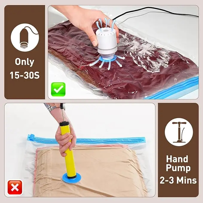 Grâce à leur fonction sous vide, ces sacs réduisent considérablement le volume des articles volumineux comme coussins, couvertures, vêtements saisonniers ou peluches. Il suffit de retirer l’air à l’aide d’un aspirateur ou d’une pompe compatible pour compresser le contenu et libérer de l’espace précieux. Cette compression rend le rangement plus organisé, propre et facile à gérer au quotidien.