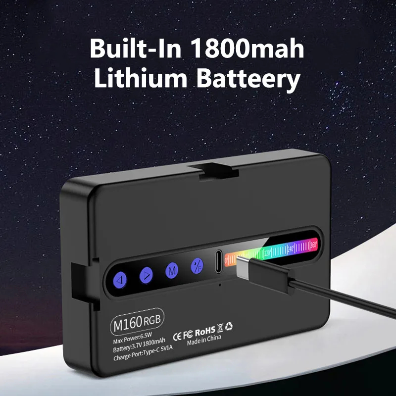 Dotée de plusieurs modes d’éclairage polychromes RVB, la M160 permet de créer différentes ambiances selon vos besoins — lumière chaude, froide ou colorée — afin d’ajouter une touche artistique à vos photos et vidéos. Elle dispose également d’un contrôle précis de la luminosité et de la température de couleur, assurant un rendu naturel et équilibré.