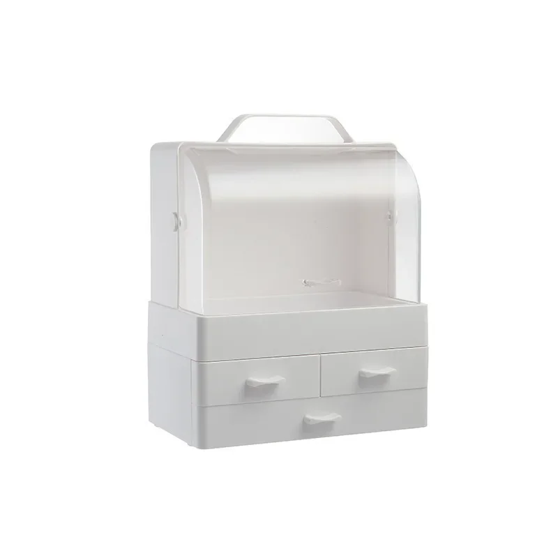 Cet organisateur de cosmétiques est conçu pour garder votre espace de beauté propre, ordonné et élégant. Grâce à son design moderne avec couvercle, il protège efficacement vos produits contre la poussière et l’humidité. Idéal pour une utilisation sur une coiffeuse, une commode ou un plan de travail, il apporte une touche esthétique tout en optimisant le rangement.
