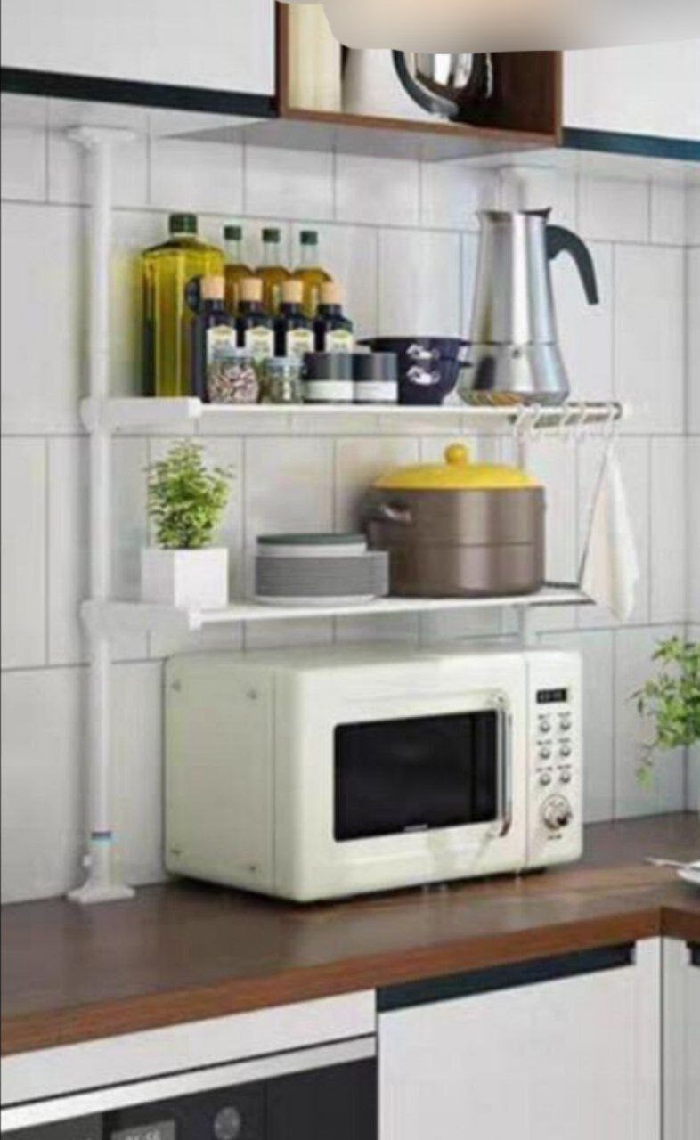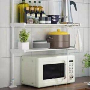 Étagère de cuisine à double couche, conçue pour optimiser l’espace et faciliter l’organisation de votre plan de travail. Elle permet de placer facilement un four à micro-ondes ou une machine à pain tout en libérant de la place pour une cuisine plus ordonnée et fonctionnelle.