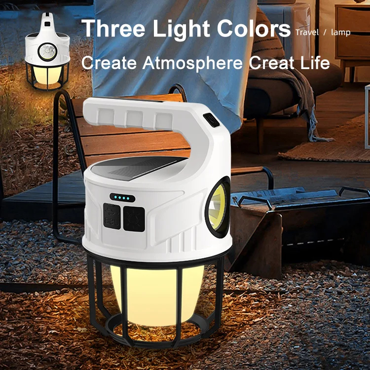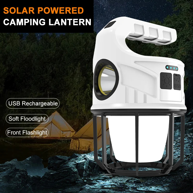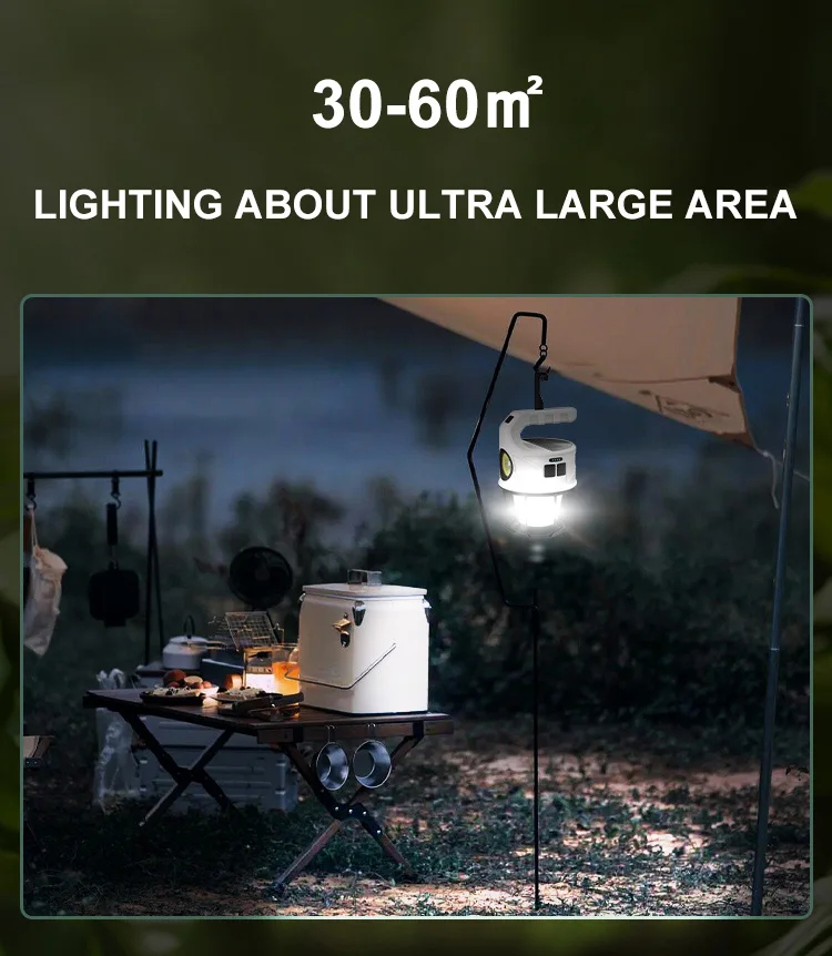 Lanterne de camping portative conçue pour une utilisation en plein air, idéale pour le camping, les sorties nocturnes et les marchés de nuit. Elle offre un éclairage puissant et fiable, pouvant être utilisée comme lampe de tente ou lampe de poche selon les besoins.