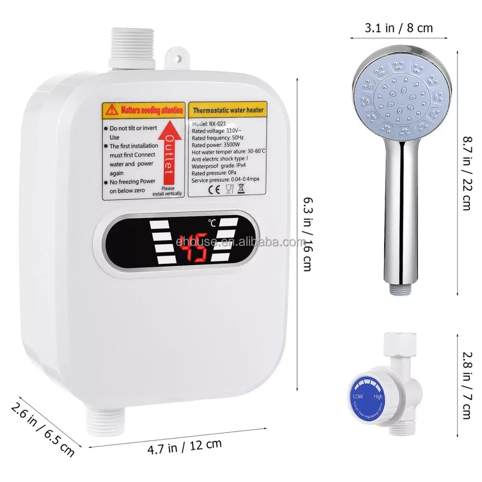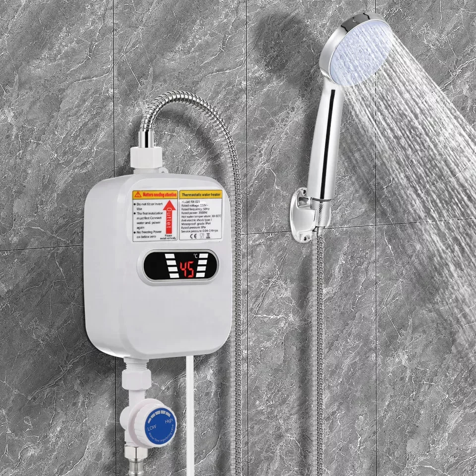 Ce mini chauffe-eau électrique instantané pour douche est conçu pour fournir de l’eau chaude rapidement et efficacement, sans avoir besoin d’un grand réservoir de stockage. Grâce à sa technologie instantanée, il chauffe l’eau à la demande, ce qui permet d’économiser de l’énergie et d’obtenir une température confortable en quelques secondes seulement. Il constitue une solution pratique et moderne pour les salles de bain, les cuisines ou les espaces où l’eau chaude est nécessaire rapidement.