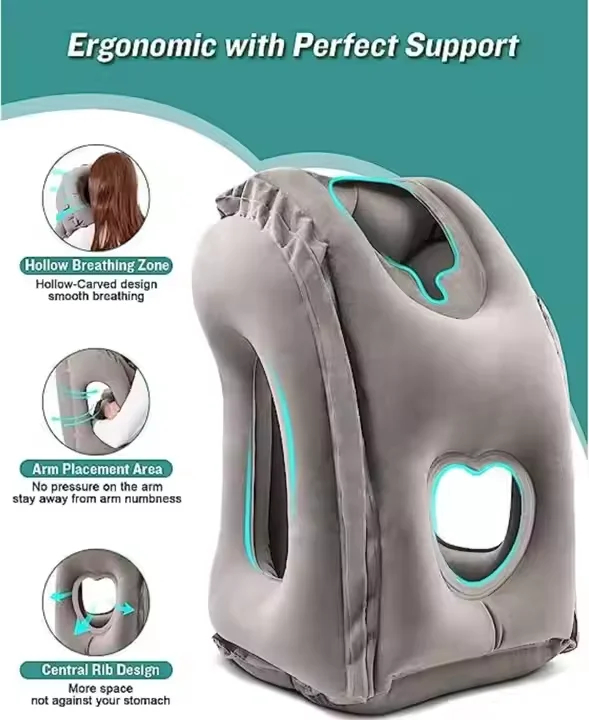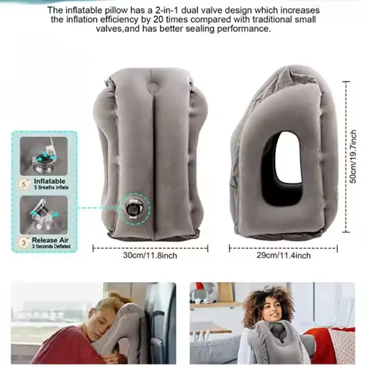 Facile à gonfler et à dégonfler, il se range rapidement dans un sac sans prendre de place. Léger et portable, il est idéal pour les voyageurs souhaitant profiter d’un moment de repos ou d’une sieste confortable, même en position assise ou sur une table.