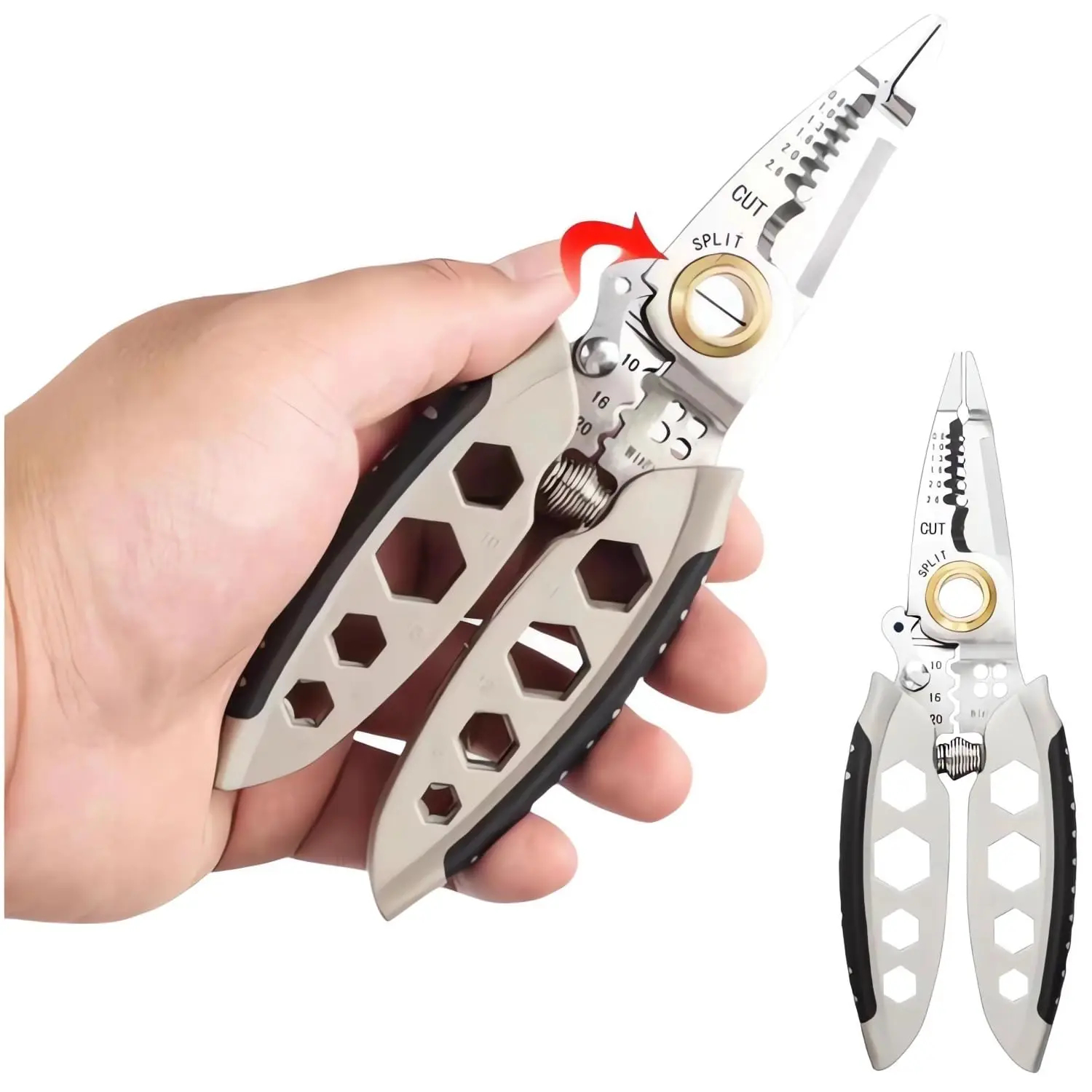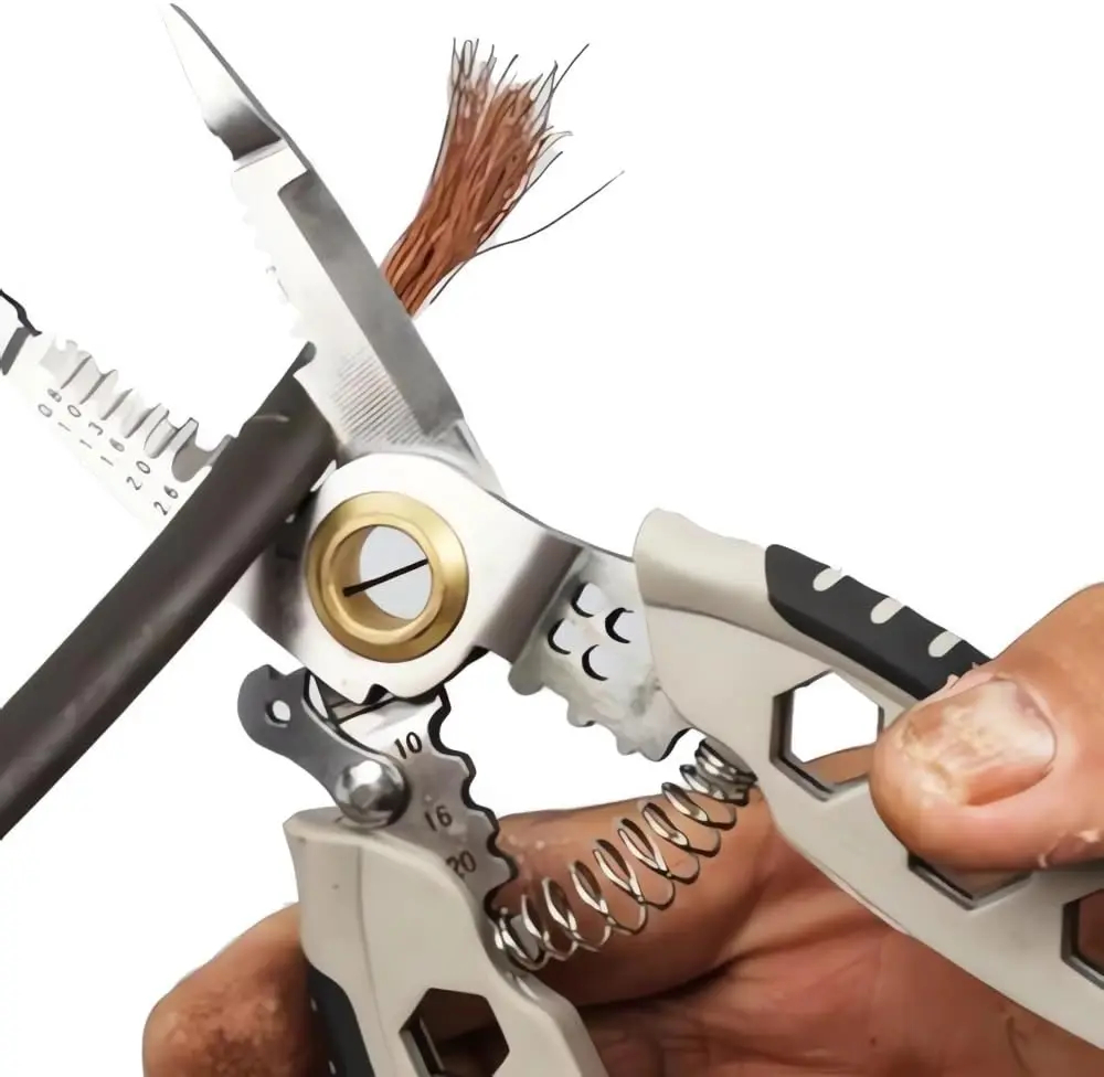 Cette pince à dénuder multifonctionnelle de 7 pouces est conçue pour travailler efficacement sur les câbles de 22 à 10 AWG. Elle permet de dénuder, couper et sertir avec précision, ce qui en fait un outil indispensable pour les travaux électriques, électroniques ou de bricolage.