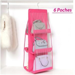 Organisateur de sac à main transparent // Etagère suspendue pour sacs // Support de rangement, 6 Poches anti-poussière